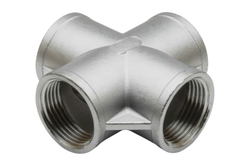 Edelstahl Kreuzstück - 1 1/2 Zoll / vierfach Innengewinde