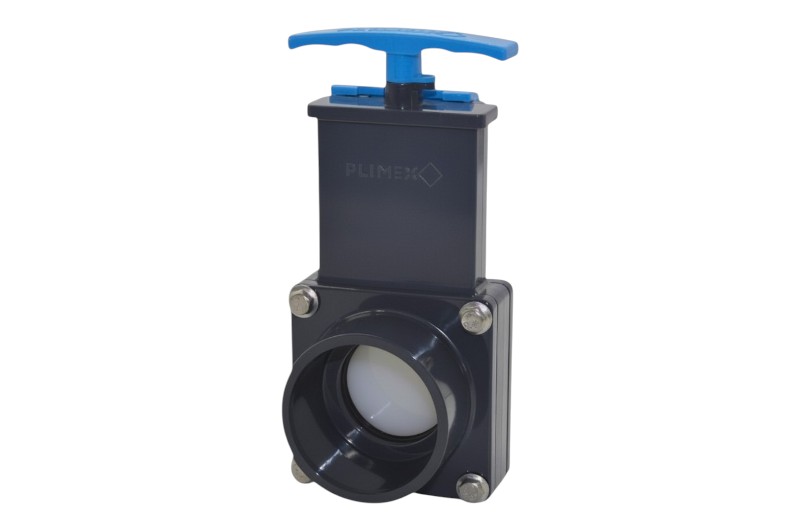PVC Absperrschieber von Plimat ist beidseitig mit einer Klebemuffe ausgestattet mit einem