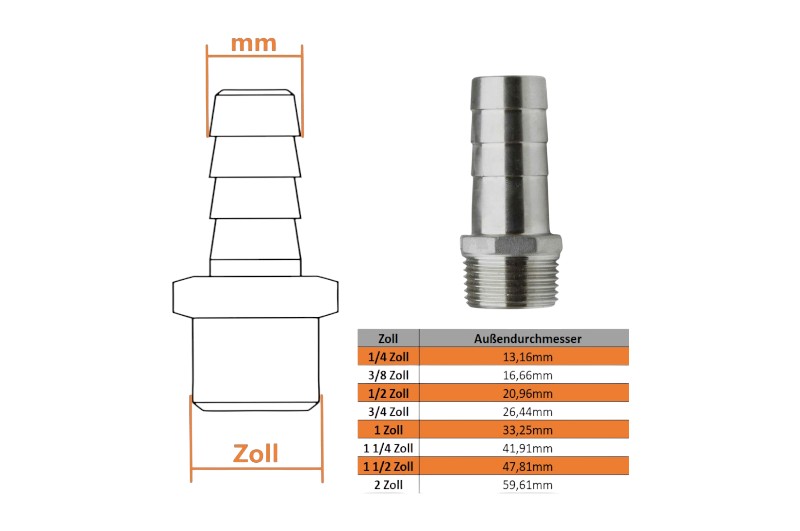 • Produkttyp: Edelstahl Schlauchtülle mit Außengewinde