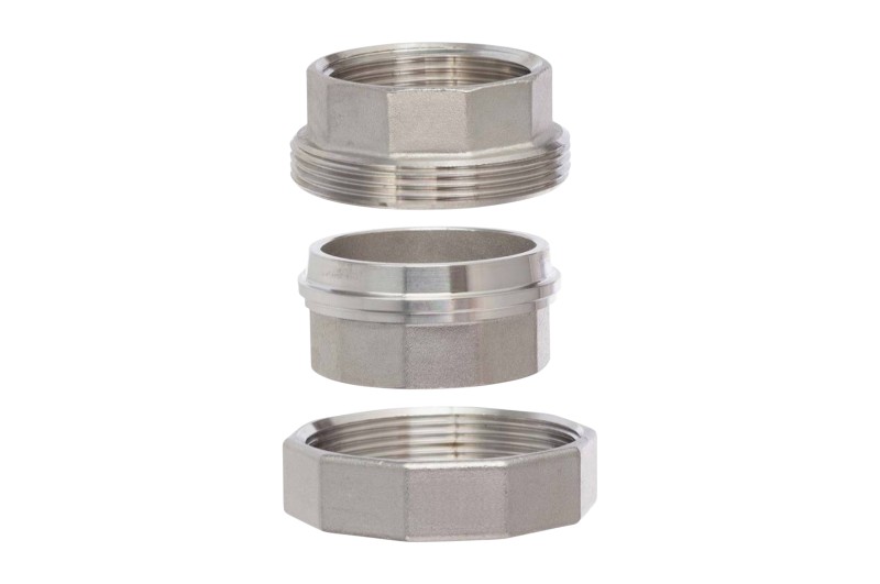 Die Gewindeseiten werden beim Festschrauben der Überwurfmutter ineinander verkeilt und schließen dicht ab.