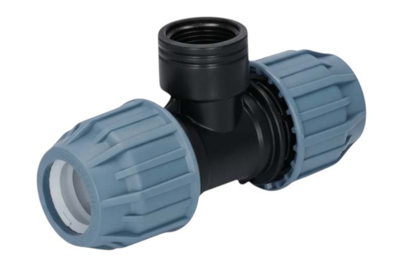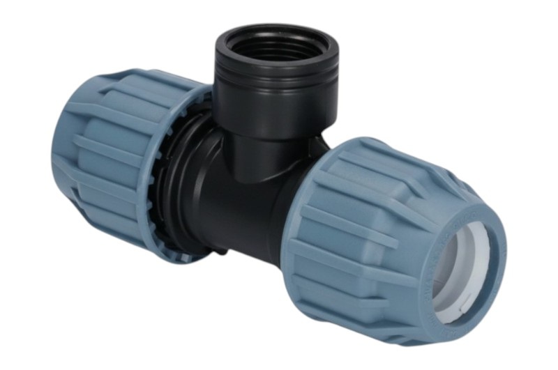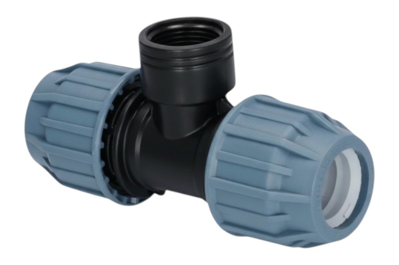 Für den Bau von Bewässerungsanlagen, Wasserleitungen und für die Beregnungstechnik werden häufig PE Fittings oder auch PP Fittings verbaut. Wir bieten Ihnen hier Unsere PE T-Stück 90 Grad Innengewinde (Klemm x Innengewinde x Klemm) - 25mm x 1 Zoll x 25mm / PN16 an.