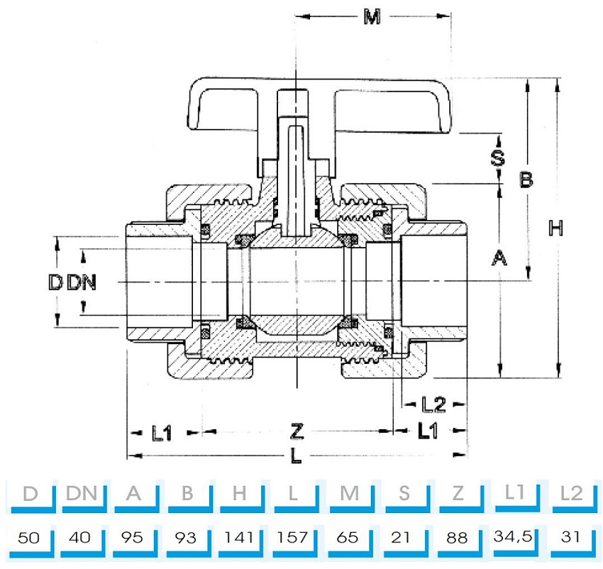Unser PVC Kugelhahn der Plimex Serie zählt zu den zuverlässigsten Kugelhähnen für Druckrohrleitungen mit 50 mm Durchmesser. Dank kontinuierlicher Weiterentwicklung bietet er: