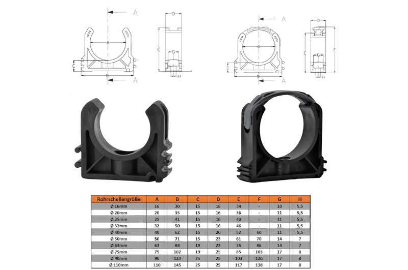 When installing pipes, pipes are often attached to walls or ceilings. With der PP Pipe Clamp you can attach your pressure pipes ideally.